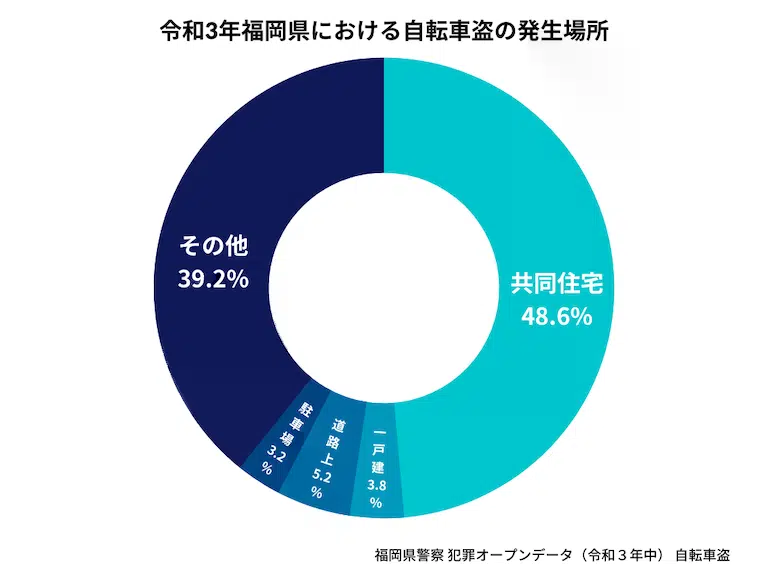 防犯意識の低さを示しているのが『鍵』でしょう。筆者の住んでいる福岡県では、令和3年の自転車盗の認知件数は5480件。過半数が無施錠です。