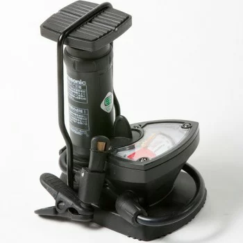 足で踏んで空気を入れるタイプ。高圧対応が皆無で知名度あるメーカーではパナレーサーの5bar対応くらいしかない。空気圧低め推奨のタイヤなら選択肢としてはアリ。