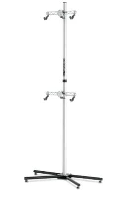 天井突っ張りタイプを床置き出来るようにした2台掛けスタンド。天井で突っ張ることができなくても近い使用感を得られるのが特徴。