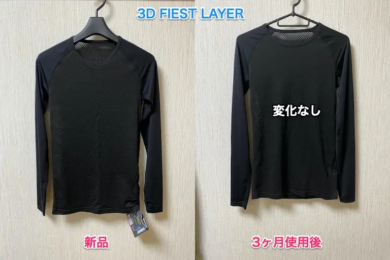 3D FIERST LAYERは胴の肌面に汗が残らない分、上着に汗が染み込みやすいので上着を汚したくない人は注意。